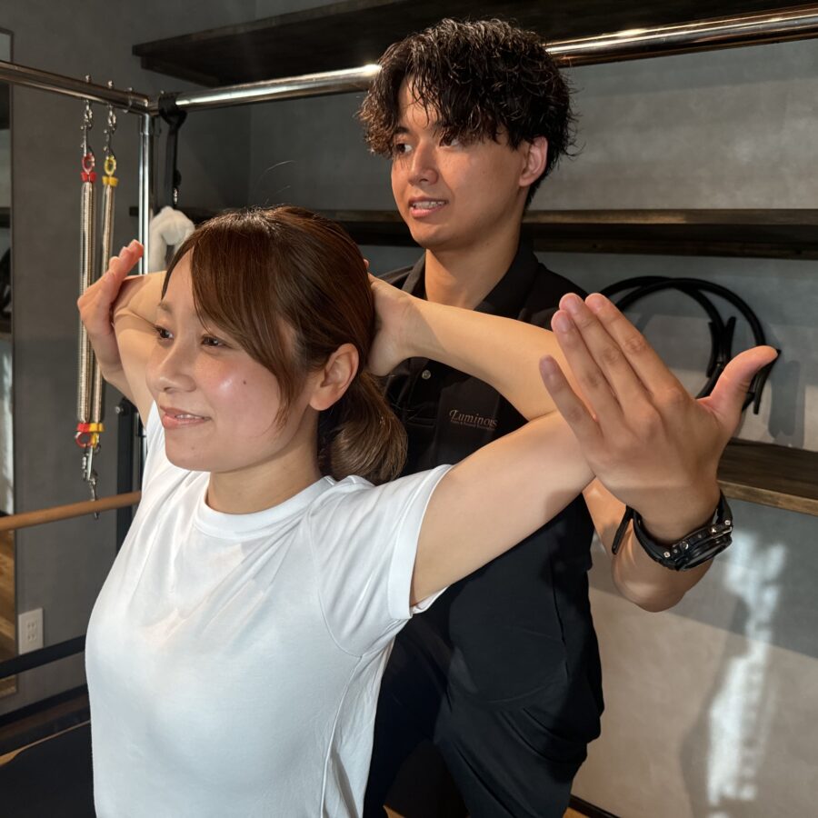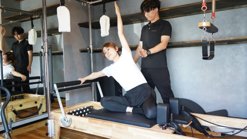 ピラティスを行った後にトレーニングを行う事によって、良い姿勢を維持するための筋肉を鍛えるのはもちろんの事、普段私生活で使うことのない筋肉を鍛える事で痩せやすく、メリハリのある体に導きます。